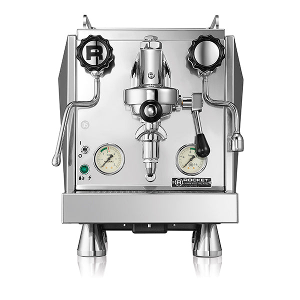 Cronometro V har to manometre (hvite) for avlesning av kjele- og pumpetrykk. I tillegg er det lagt ekstra vekt på detaljene. Maskinen tilbys også med rotasjonspumpe, for deg som har behov for fast vanntilførsel.