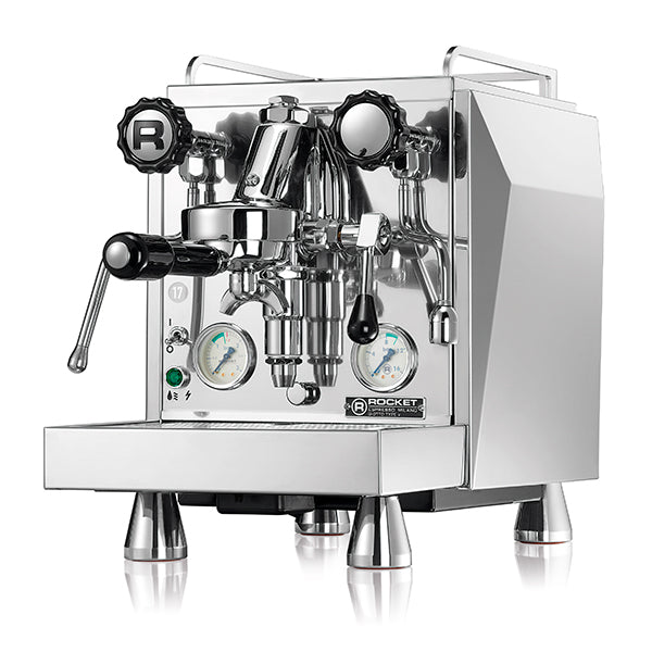 Rocket Espresso Giotto Cronometro V er en kvalitets-espressomaskin for hjemmebruk. Rockets maskiner er alle håndlagde med de beste materialene på Rockets fabrikk i Milano. Giotto, med sine diamantformede sidepaneler, er en sann klassiker innen espressomaskinverdenen.