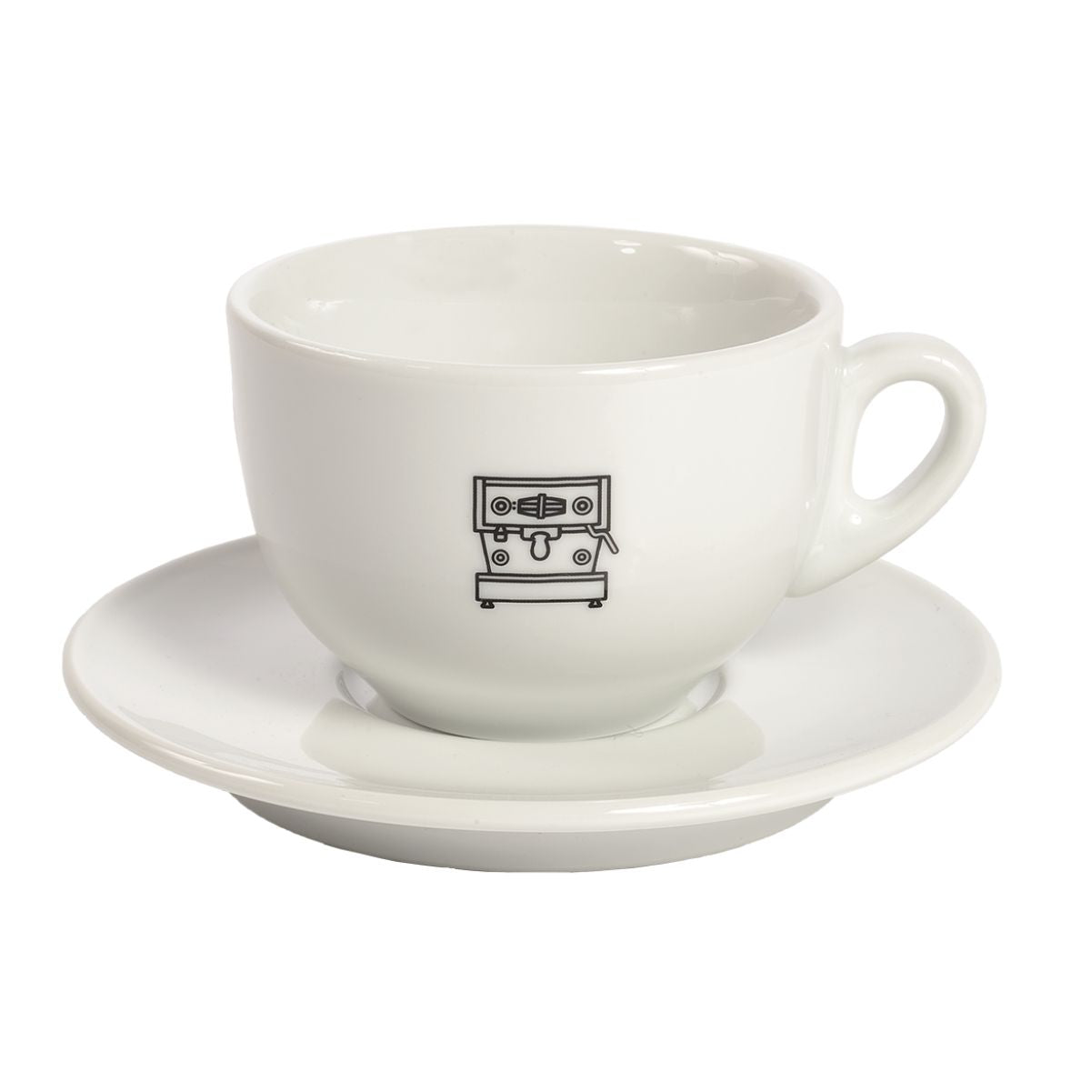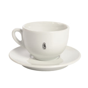 Den originale hvite La Marzocco cappuccinokopp i porselen med sort Linea Mini-logo. Håndlaget i Italia.
