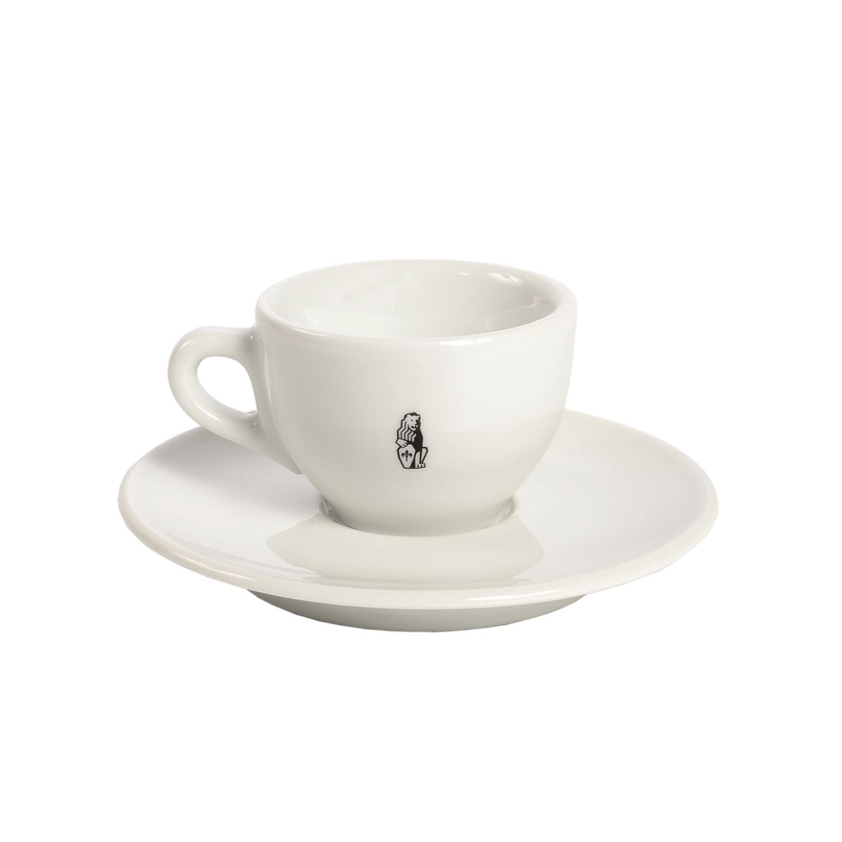 Den originale hvite La Marzocco espressokoppen med svart Linea Mini-logo, håndlaget i Italia. Koppen rommer 80 ml. Se ytterligere informasjon.