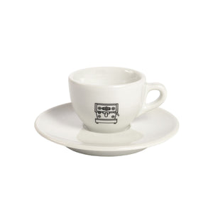 Den originale hvite La Marzocco espressokoppen med svart Linea Mini-logo. Håndlaget i Italia.