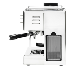 Termoblock & pumpe – Støpt metall-termoblock med lang kobberspiralslange gir rask oppvarming og stabilitet. Vibrasjonspumpe med lydreduksjon og manometer for å følge bryggetrykket.