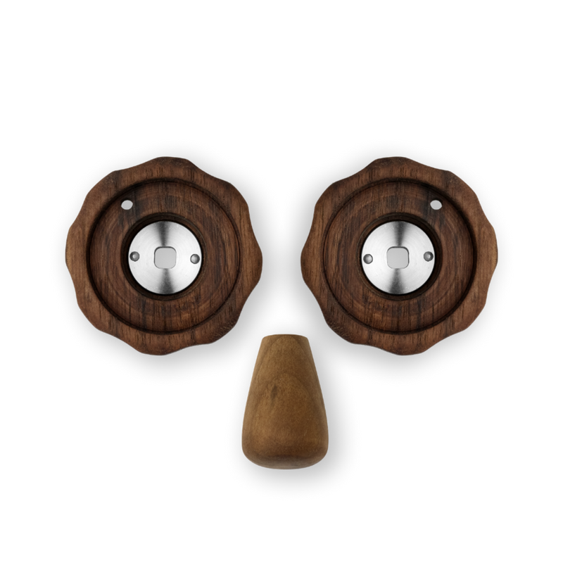 Set med två hjul- och ett droppformat handtag i valnöt. Det finns inget bättre än snygga detaljer och gott hantverk. Det är precis vad du får med tillbehören från BAARK. Produkterna är utvecklade och tillverkade i Danmark och finns i oliv-, ek- och valnötsträ.