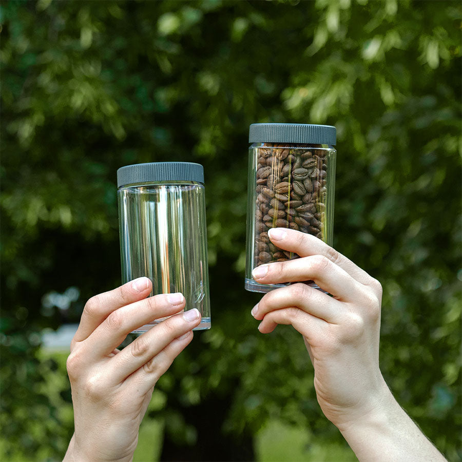 Förutom att den kan förvara dina nyrostade bönor, kan den naturligtvis också förvara ditt nymalda kaffe. Den kan även användas som kopp, eftersom det tjocka materialet håller värmen väl.